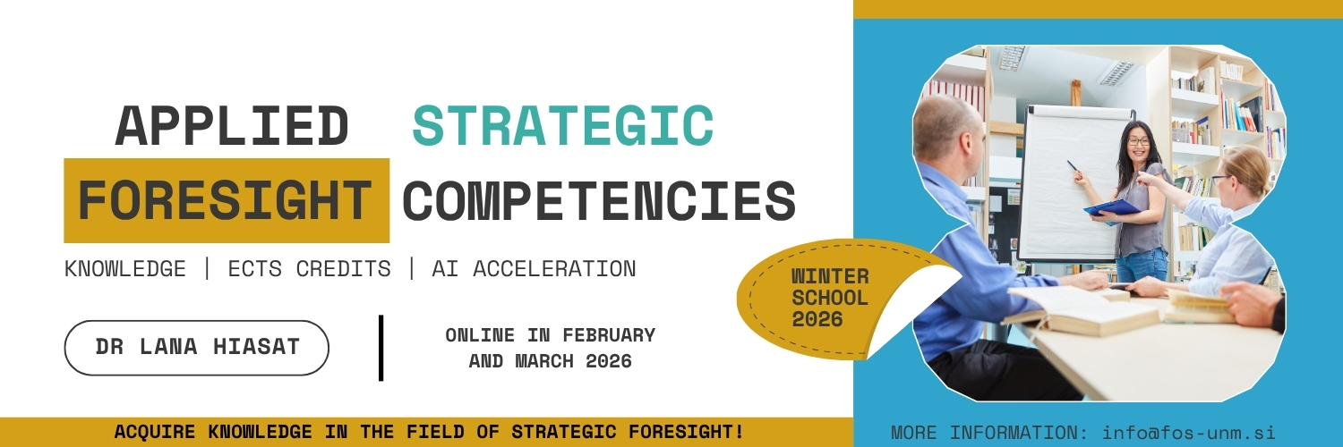 The Winter School 2026 - Applied Strategic Foresight Competencies organized by the Faculty of Organizational Studies in Novo mesto, Slovenia through its International Transdisciplinary Research Centre LEAD (‘Leadership Excellence and Development’) and Academic Research Centre (‘ARC’) is offered to all students who wish to acquire knowledge in the field of strategic foresight and gain ECTS credits.
