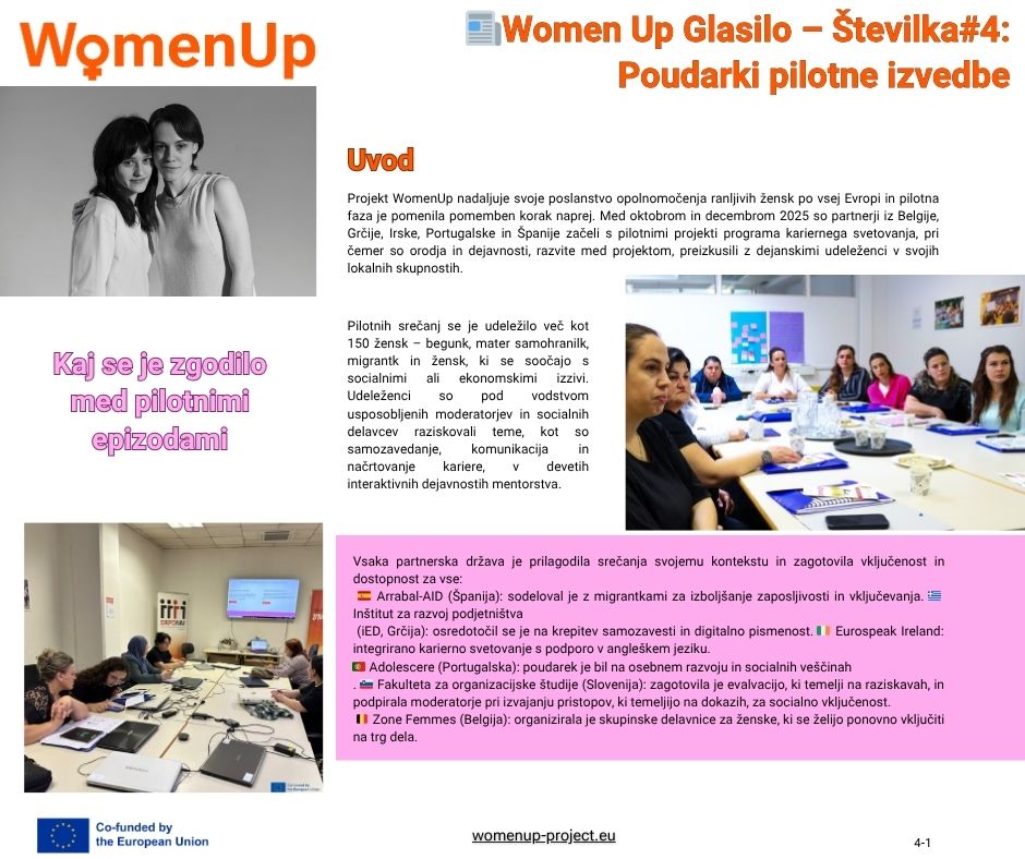 The fourth issue of the newsletter of the international WOMEN Up project, in which FOŠ is actively involved as a project partner, has been published. The project aims to empower vulnerable women across Europe, with a special focus on single mothers, migrant women, refugees, and other women who face barriers to entering the labour market.