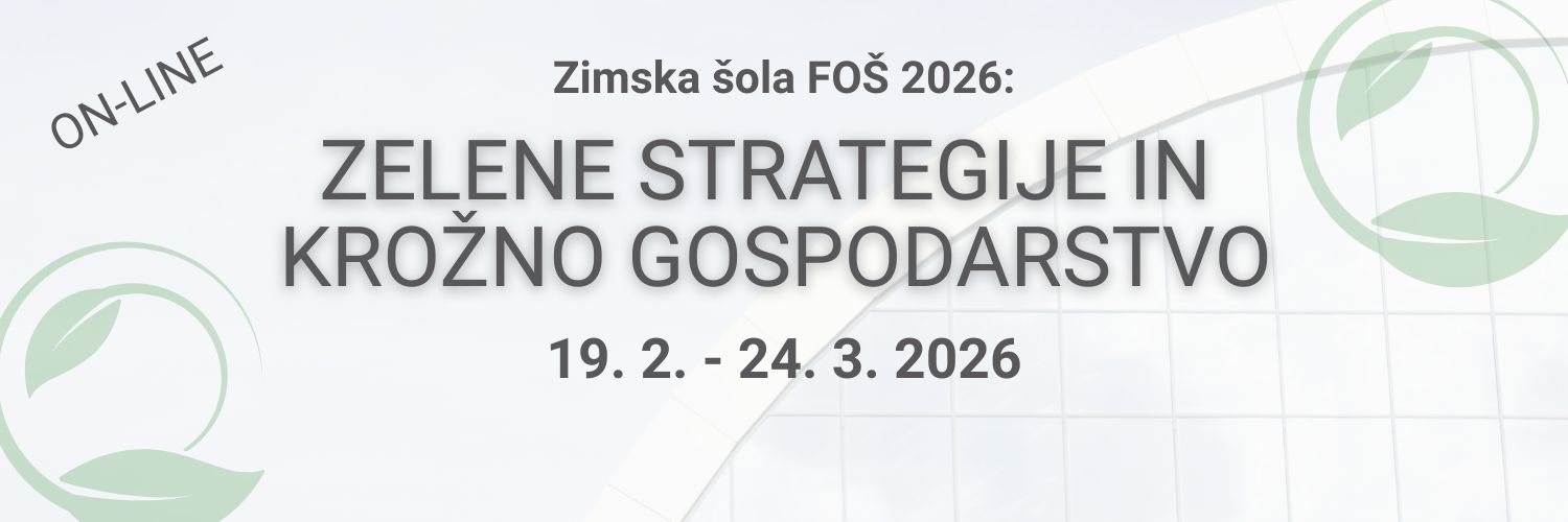 Vabimo vas na Zimsko šolo FOŠ 2026: SRO - Zelene strategije in krožno gospodarstvo, ki bo potekala od 19. 2. do 24. 3. 2026, na daljavo preko MS Teams.